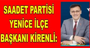 SAADET Partisi Yenice İlçe Başkanı İsmail Kirenli, iktidar partisi mensuplarının Yenice’ye verdiği sözleri tutması gerektiğini, doğalgazın da Yenicelilerin hakkı olduğunu söyledi. Kirenli yaptığı yazılı açıklamada; “Seçimin üzerinden iki yıl geçmesine rağmen iktidar partisi tarafından verilen Organize Sanayi Bölgesi ve Doğalgaz konusundaki sözler bugüne kadar tutulmamıştır. Yenice’ye doğalgaz getirilmeli, iktidar partisi …