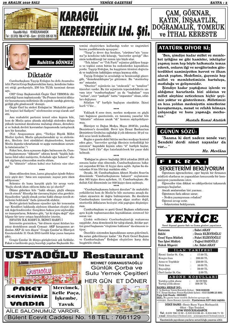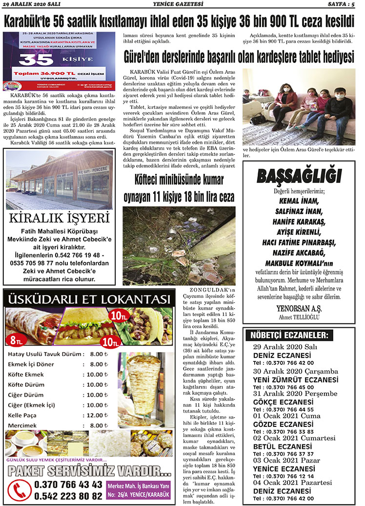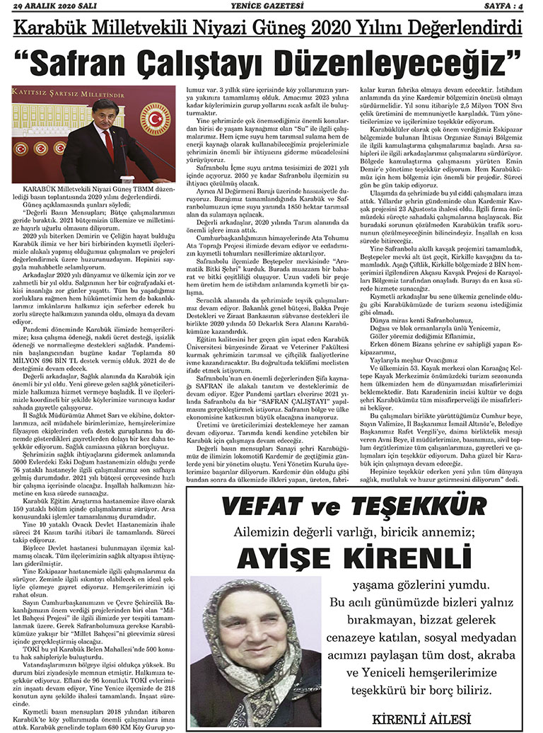 29 ARALIK 2020