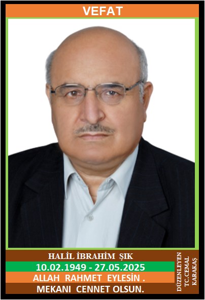 İLÇEMİZ YORTAN BELDESİ DÖNGELLER MAHALLESİ NÜFUSUNA KAYITLI OLUP, YORTAN BELDESİ MERKEZ MAHALLE RAUF ORBAY SOKAK NO:1/1’DE İKAMET EDEN MERHUM HASAN ve MERHUME MERYEM OĞLU, MERHUME KEZBAN ŞIK EŞİ, İLÇEMİZ ESNAFLARINDAN (KOMAGENE ÇİĞKÖFTE) YORTAN ESNAF KREDİ KEFALET KOOPERATİF BAŞKANI MUZAFFER ŞIK’IN BABASI, DÖNGELLER ESKİ MUHTARI (10.02.1949 DOĞUMLU) HAKKIN RAHMETİNE KAVUŞMUŞTUR. CENAZESİ (28.05.2025 ÇARŞAMBA GÜNÜ) YORTAN BELDESİ KARŞI CAMİDE ÖĞLE NAMAZINA MÜTEAKİP KILINACAK CENAZE NAMAZINDAN SONRA SON YOLCULUĞUNA UĞURLANACAKTIR. EŞİ MERHUME KEZBAN ŞIK, ÇOCUKLARI MUZAFFER ŞIK, MESUT ŞIK, MUHAMMED ŞIK, AYŞE İSLAM, DAMADI MEHMET İSLAM, KARDEŞLERİ MEHMET ŞIK, HASAN ŞIK, KADİR ŞIK, MERHUM NURİ ŞIK, RADİYE ŞIK. ALLAH RAHMET EYLESİN. MEKANI CENNET OLSUN. GERİDE BIRAKTIĞI SEVENLERİNE VE AİLESİNE BAŞSAĞLIĞI VE SABIR DİLERİZ.