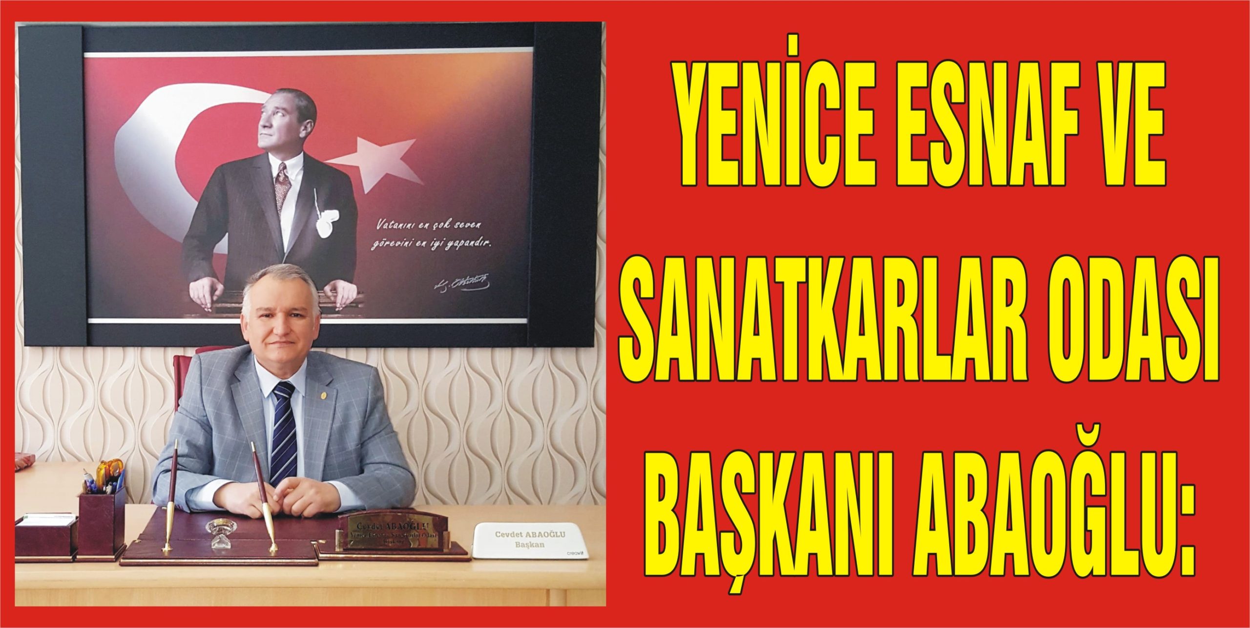 Yaklaşık 8 yıldır Karabük Yenice Esnaf ve Sanatkârlar Odası Başkanlığı görevimizi, yönetim ve denetim kurullarımızla birlikte büyük bir onur, gururla sürdürmekteyiz.
