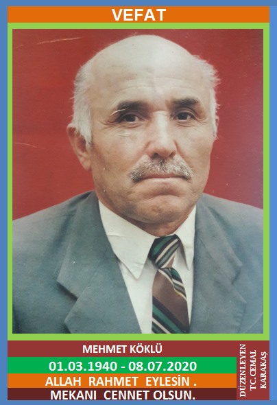 YENİCE NADULLAR KÖYÜ NÜFUSUNA KAYITLI OLUP, NADULLAR KÖYÜ İYİOĞLU MEVKİ NO:38/A’DA İKAMET EDEN MERHUM AHMET ve KEZBAN OĞLU, ZEYNEP KÖKLÜ EŞİ, NADULLAR ESKİ MUHTARI MEHMET KÖKLÜ (01.03.1940 DOĞUMLU) HAKKIN RAHMETİNE KAVUŞMUŞTUR. CENAZESİ (08.07.2020 ÇARŞAMBA GÜNÜ) NADULLAR KÖYÜ İYİOĞLU’NDA SAAT: 11.30 KILINACAK CENAZE NAMAZINA MÜTEAKİP SON YOLCULUĞUNA UĞURLANACAKTIR. EŞİ ZEYNEP KÖKLÜ, ÇOCUKLARI CELAL KÖKLÜ, VELİ KÖKLÜ, HANİFE KARAÇENGEL, AZİME AYVACIK, DAMATLARI, MUAMMER KARAÇENGEL, METİN AYVACIK, KARDEŞLERİ MAHMUT KÖKLÜ, FATMA ARMUT, FERDANE DEMİR, RABİŞ YAĞBASAN, MERHUM HASAN KÖKLÜ. ALLAH RAHMET EYLESİN. MEKANI CENNET OLSUN. GERİDE BIRAKTIĞI SEVENLERİNE VE AİLESİNE BAŞSAĞLIĞI VE SABIR DİLERİZ.