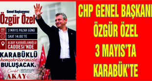 (Haber Merkezi) – Cumhuriyet Halk Partisi (CHP) Genel Başkanı Özgür Özel, 3 Mayıs 2026 Pazar günü Karabük’e gelecek. CHP Karabük Milletvekili Cevdet Akay, CHP Genel Başkanı Özgür Özel’in 3 Mayıs’ta Karabük’e geleceğini belirterek, yaptığı açıklamada ” Cevdet AKAY: “Bu toprakların emeğini yok sayanlar, 3 Mayıs’ta Karabük’ten yükselen sesi duymak zorunda …