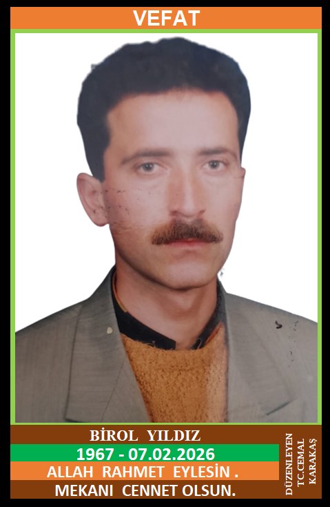 KAYADİBİ KÖYÜ NÜFUSUNA KAYITLI OLUP, KAYADİBİ KÖYÜ ADA KÜME EVLERİ NO: 31 ve SİVAS İLİNDE İKAMET EDEN AYDIN ve HALİDE OĞLU, HATİCE YILDIZ EŞİ, BİROL YILDIZ (1967 DOĞUMLU) HAKKIN RAHMETİNE KAVUŞMUŞTUR. CENAZESİ (08.02.2026 PAZAR GÜNÜ) KAYADİBİ KÖYÜ MERKEZ CAMİİNDE ÖĞLE NAMAZINA MÜTEAKİP KILINACAK CENAZE NAMAZINDAN SONRA SON YOLCULUĞUNA UĞURLANACAKTIR. BABASI AYDIN YILDIZ, ANNESİ HALİDE YILDIZ, EŞİ HATİCE YILDIZ, ÇOCUKLARI AYDIN GÜRHAN YILDIZ, İPEK YILDIZ, KARDEŞLERİ ALİ YILDIZ, AYŞE KESER. ALLAH RAHMET EYLESİN. MEKANI CENNET OLSUN. GERİDE BIRAKTIĞI SEVENLERİNE VE AİLESİNE BAŞSAĞLIĞI VE SABIR DİLERİZ.