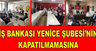 TÜRKİYE İş Bankası Yenice Şubesi’nin kapatılmaması konusunda AKP, CHP ve MHP İlçe Başkanları destek sözü verdiler. Geçtiğimiz Perşembe günü AKP İlçe Başkanı Erdal Yirmibeş, CHP İlçe Başkanı Enver Özgü, MHP İlçe Başkanı Ergün Karakarık, Esnaf Odası Başkanı Cevdet Abaoğlu ve Şoförler Odası Başkan Vekili Serdal Kazancı’dan oluşan heyet, AKP Karabük İl …