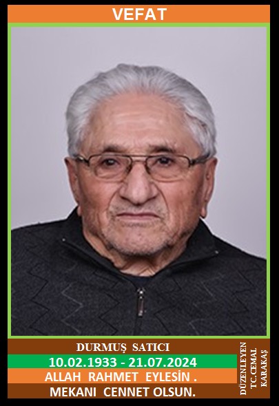 İLÇEMİZ GÜNEY KÖYÜ NÜFUSUNA KAYITLI OLUP, YİRMİBEŞLER MAHALLESİ YİRMİBEŞLER KÜME EVLERİ NO:22/3’DE İKAMET EDEN MERHUM DURMUŞ ve MERHUME AYİŞE OĞLU, ZEKİYE SATICI EŞİ, KEMİK LAKABI İLE BİLİNEN DURMUŞ SATICI (10.02.1933 DOĞUMLU) HAKKIN RAHMETİNE KAVUŞMUŞTUR. CENAZESİ (21.07.2024 PAZAR GÜNÜ) YENİCE MERKEZ CAMİİNDE ÖĞLE NAMAZINA MÜTEAKİP KILINACAK CENAZE NAMAZINDAN SONRA SON YOLCULUĞUNA UĞURLANACAKTIR. EŞİ ZEKİYE SATICI, ÇOCUKLARI VEYSEL SATICI, NEZAKET MADAK, SEVGİ YORULMAZ, SAKİNE SATICI , NEVZAT MADAK, ALAATTİN YORULMAZ, KEMAL SATICI, KARDEŞLERİ AYŞE KARAKOCA, MERHUM ŞÜKRÜ SATICI, MERHUM İBRAHİM SATICI, MERHUM MEHMET SATICI, MERHUM HÜSEYİN SATICI. ALLAH RAHMET EYLESİN. MEKANI CENNET OLSUN. GERİDE BIRAKTIĞI SEVENLERİNE VE AİLESİNE BAŞSAĞLIĞI VE SABIR DİLERİZ.