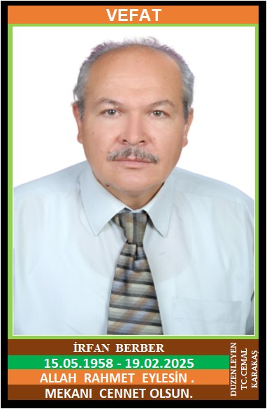 İLÇEMİZ YORTAN BELDESİ MERKEZ MAHALLE NÜFUSUNA KAYITLI OLUP, YORTAN BELDESİ MERKEZ MAHALLE FATİH CADDESİ NO:44 F’DE İKAMET EDEN MERHUM ŞEVKİ ve MERHUME İHSANE OĞLU, FATMA BERBER EŞİ YORTAN ESNAFLARINDAN İRFAN BERBER (15.05.1958 DOĞUMLU) HAKKIN RAHMETİNE KAVUŞMUŞTUR. CENAZESİ (19.02.2025 ÇARŞAMBA GÜNÜ) YORTAN BELDESİ MERKEZ CAMİİNDE İKİNDİ NAMAZINA MÜTEAKİP KILINACAK CENAZE NAMAZINDAN SONRA SON YOLCULUĞUNA UĞURLANACAKTIR. EŞİ FATMA BERBER, ÇOCUKLARI ERGÜN BERBER, ALLAH RAHMET EYLESİN. MEKANI CENNET OLSUN. GERİDE BIRAKTIĞI SEVENLERİNE VE AİLESİNE BAŞSAĞLIĞI VE SABIR DİLERİZ.