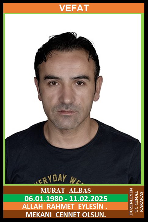 İLÇEMİZ YAMAÇ KÖYÜ YUKARI MAHALLE NÜFUSUNA KAYITLI OLUP, YAMAÇ KÖYÜ YUKARI KÜME EVLERİ NO: 13/A’DA İKAMET EDEN MERHUM DURMUŞ ve ERMAN OĞLU, İSA ve FATMA ÇALIKBAŞI DAMADI, YASEMİN ALBAS EŞİ, YENİCE ZİRAAT ODASI, ŞOFÖRLER ODASI ve ESNAF ODASI ÜYESİ MURAT ALBAS (06.01.1980 DOĞUMLU) GEÇİRDİĞİ KALP KRİZİ SONUCU HAKKIN RAHMETİNE KAVUŞMUŞTUR. CENAZESİ (12.02.2025 ÇARŞAMBA GÜNÜ) YAMAÇ KÖYÜ YUKARI MAHALLE CAMİİNDE ÖĞLE NAMAZINA MÜTEAKİP KILINACAK CENAZE NAMAZINDAN SONRA SON YOLCULUĞUNA UĞURLANACAKTIR. ANNESİ ERMAN ALBAS, KAYINBABASI İSA ÇALIKBAŞI, KAYINVALDESİ FATMA ÇALIKBAŞI, EŞİ YASEMİN ALBAS, ÇOCUKLARI YUSUF ALBAS, BÜŞRA ALBAS, KARDEŞLERİ MERHUM ŞENOL ALBAS, ORHAN ALBAS, KAYINBİLADERLERİ MUSTAFA ÇALIKBAŞI, YASİN ÇALIKBAŞI, ABDULLAH ÇALIKBAŞI. ALLAH RAHMET EYLESİN. MEKANI CENNET OLSUN. GERİDE BIRAKTIĞI SEVENLERİNE VE AİLESİNE BAŞSAĞLIĞI VE SABIR DİLERİZ.