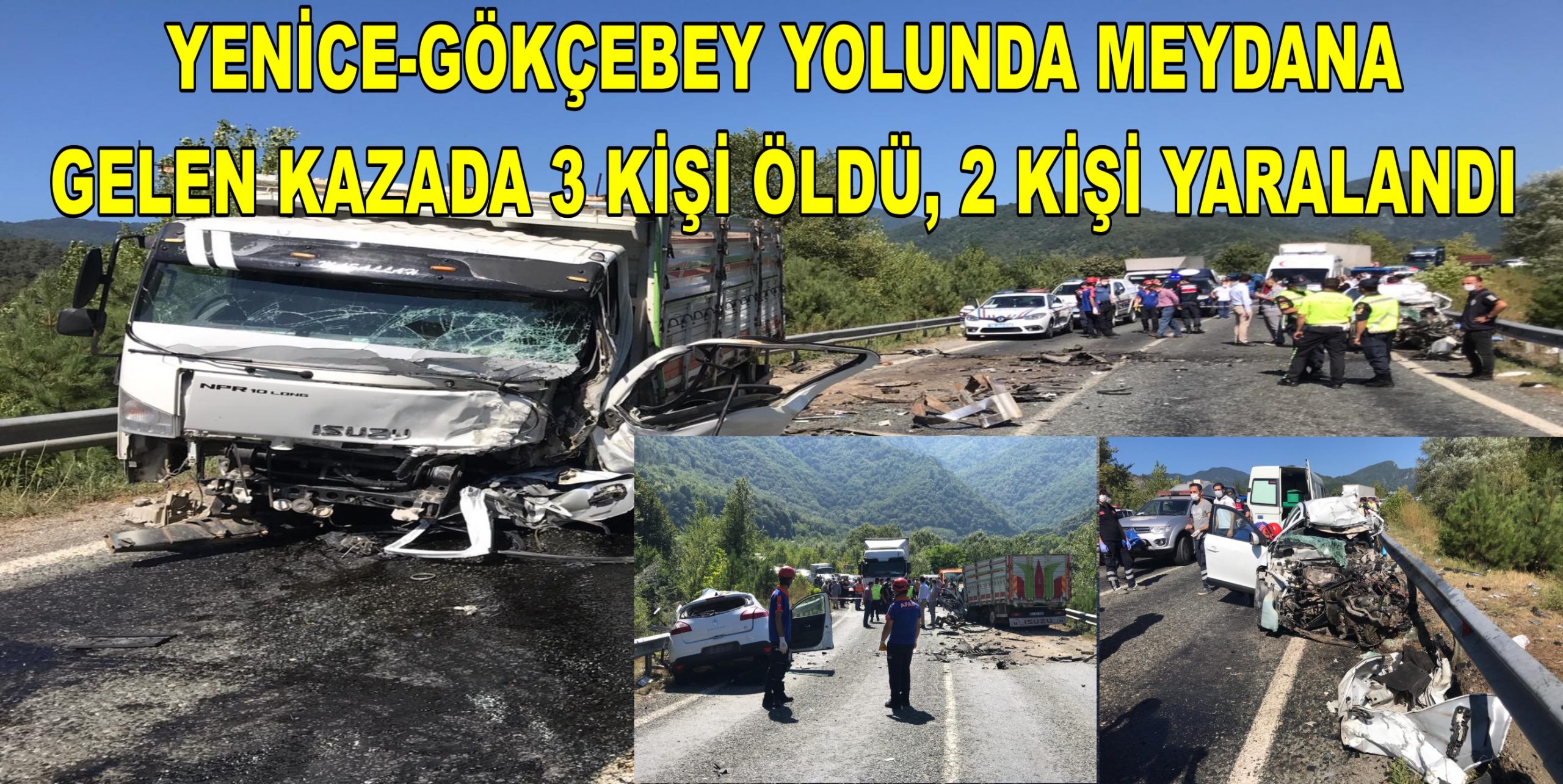 İLÇEMİZ Kayadibi Köyü sınırları içerisinde Yenice-Gökçebey yolunda otomobil ile kamyonun çarpışması sonucu 3 kişi öldü, 2 kişi yaralandı.