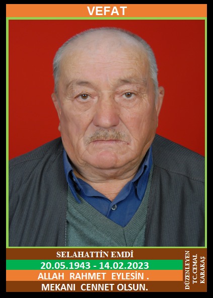 YENİCE TIR KÖYÜ NÜFUSUNA KAYITLI OLUP, YENİCE MERKEZ MAHALLESİ İNCEDERE CADDESİ NO:61/1’DE İKAMET EDEN MERHUM İZZET ve MERHUME HANİFE OĞLU, ZEYNEP EMDİ EŞİ, MADEN EMEKLİSİ (20.05.1943 DOĞUMLU) HAKKIN RAHMETİNE KAVUŞMUŞTUR. CENAZESİ (15.02.2023 ÇARŞAMBA GÜNÜ) YENİCE MERKEZ CAMİİNDE ÖĞLE NAMAZINA MÜTEAKİP KILINACAK CENAZE NAMAZINDAN SONRA SON YOLCULUĞUNA UĞURLANACAKTIR. EŞİ ZEYNEP EMDİ, ÇOCUKLARI TURGUT EMDİ, RAMAZAN EMDİ, TURAN EMDİ, ASİYE KUZÖREN, HATİCE TAŞCI, GÜLSÜN AYVACIK, DAMATLARI SALİM KUZÖREN, ŞEVKET TAŞCI, ORHAN AYVACIK. ALLAH RAHMET EYLESİN. MEKANI CENNET OLSUN. GERİDE BIRAKTIĞI SEVENLERİNE VE AİLESİNE BAŞSAĞLIĞI VE SABIR DİLERİZ.